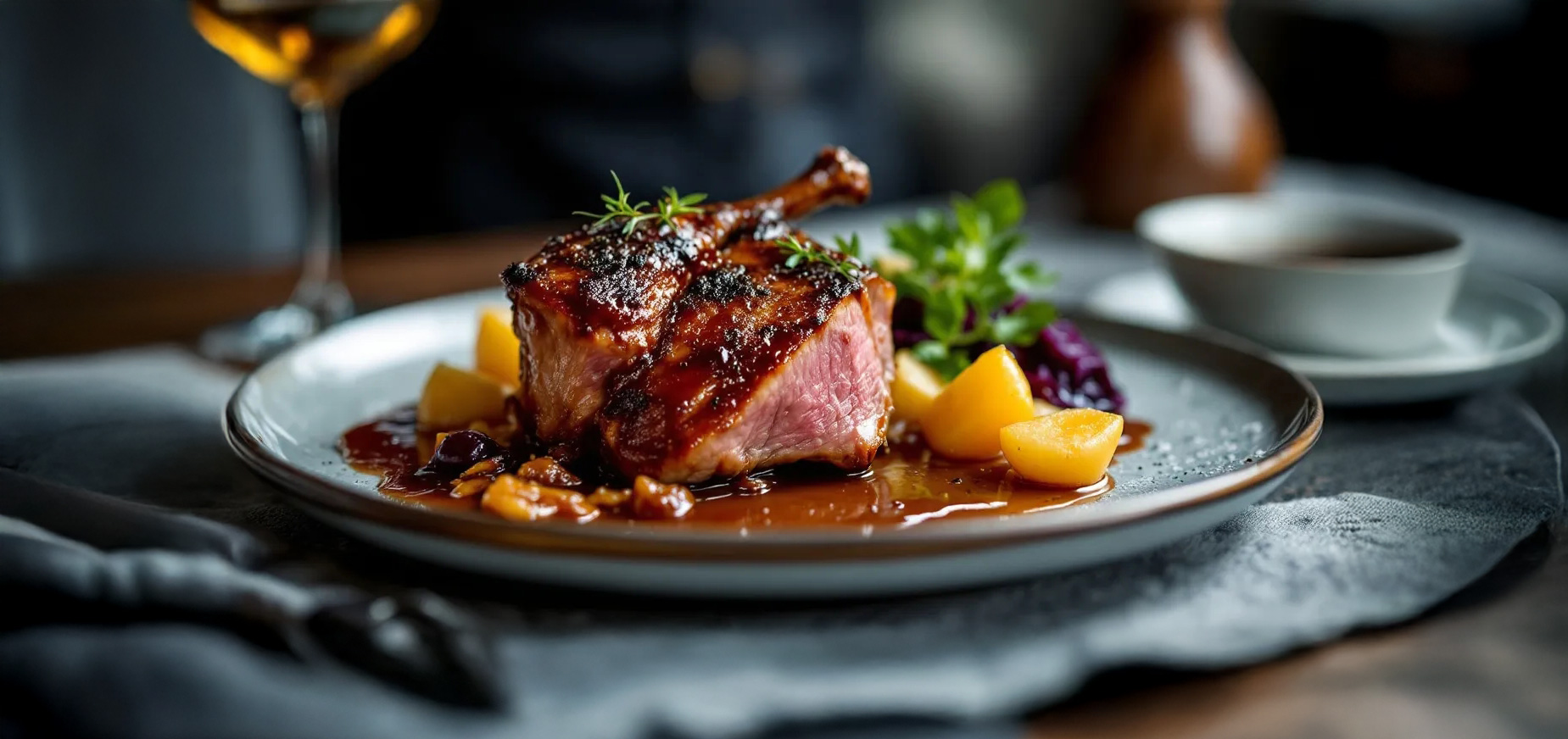 æble-sveske-kompot og hjemmelavet rødkål.